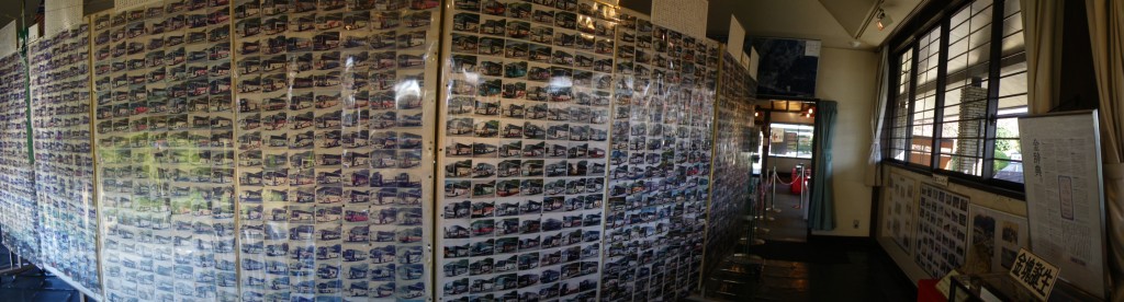 多分ホントに何も展示するものがなかったのだろう。金にまつわるあれやこれやより、こんな訪れた観光バスの写真・バスガイドさんの往年の写真がずらり。パノラマで撮らないと入らないほどずらり。