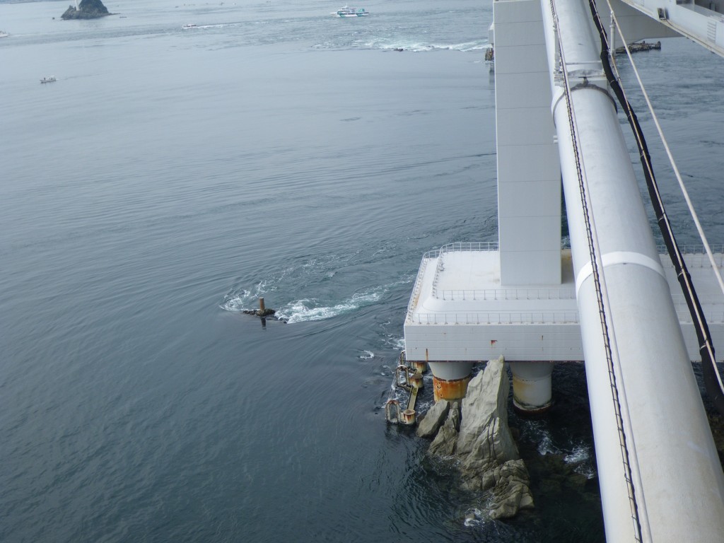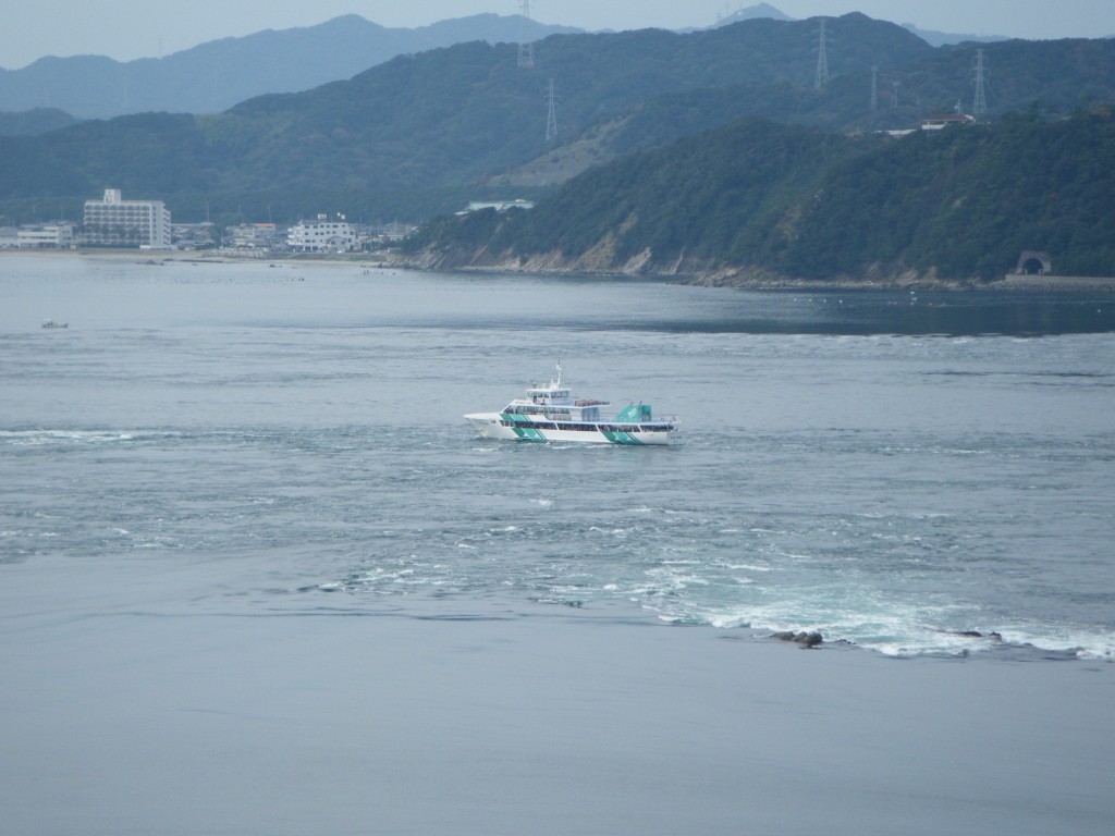そしてなんとかたどり着いた道の駅「うずしお」。一応潮汐表を見て流れている時間に来るように設定したのだけど、小さいながら渦も見えた。