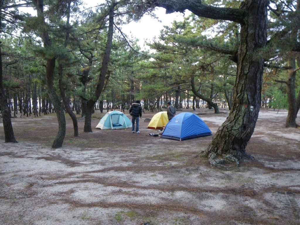 近くの国民宿舎「慶野松原荘」で聞いてみたら入浴OKということで、温泉に入らせて頂いた。お湯の暖かさときたら。体は冷えていたのだろう。テントに帰ってきたときには風も収まり波の音も聞こえなくなっていた。