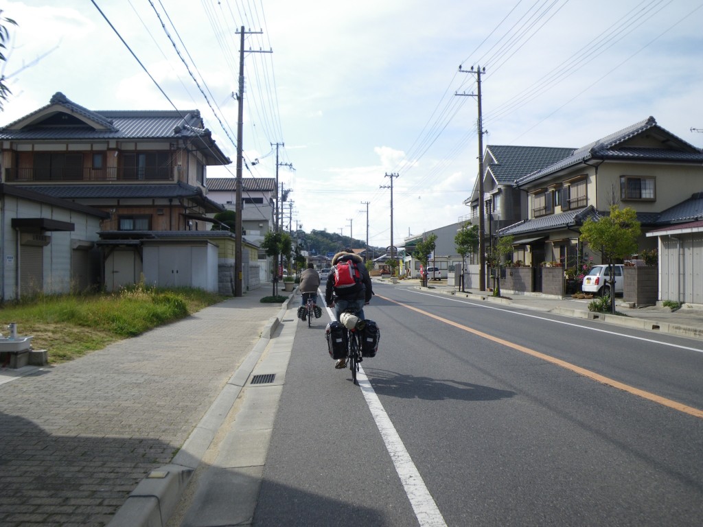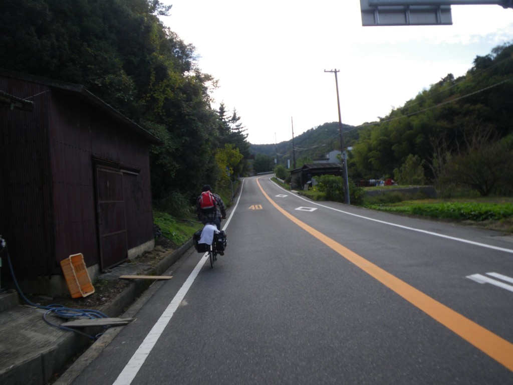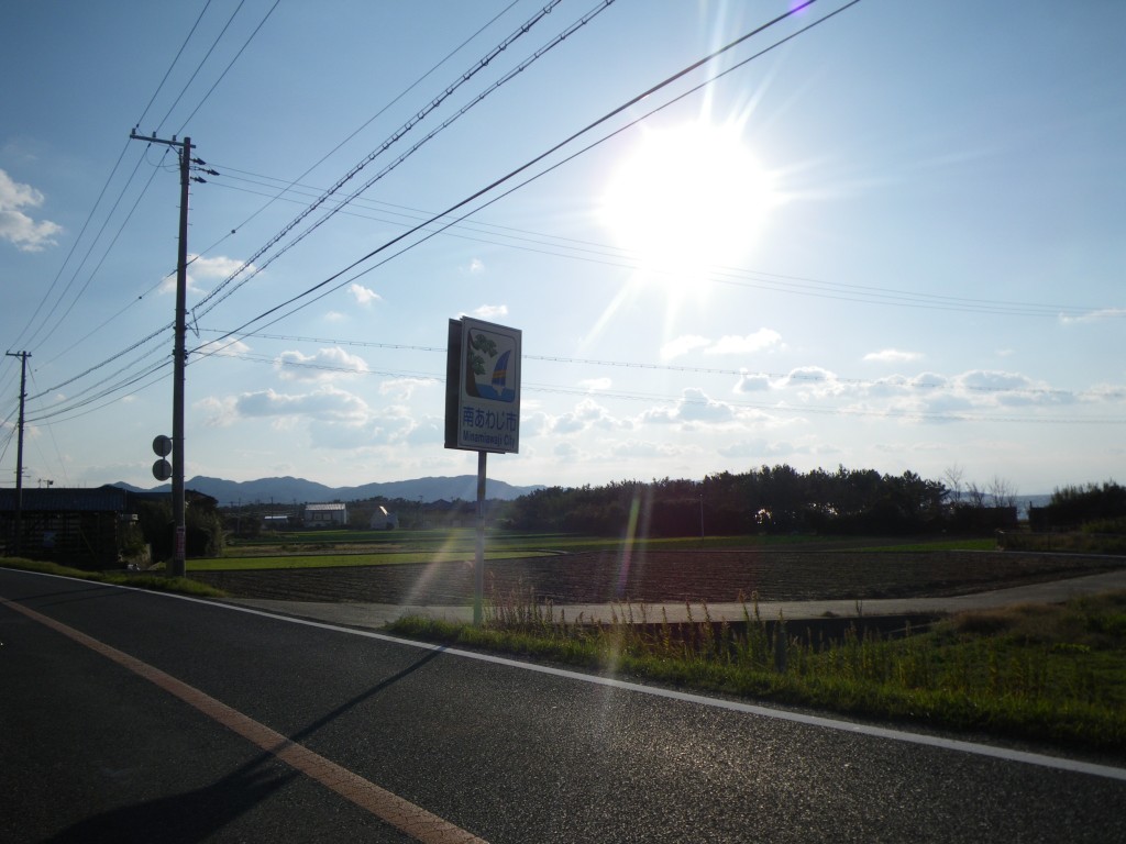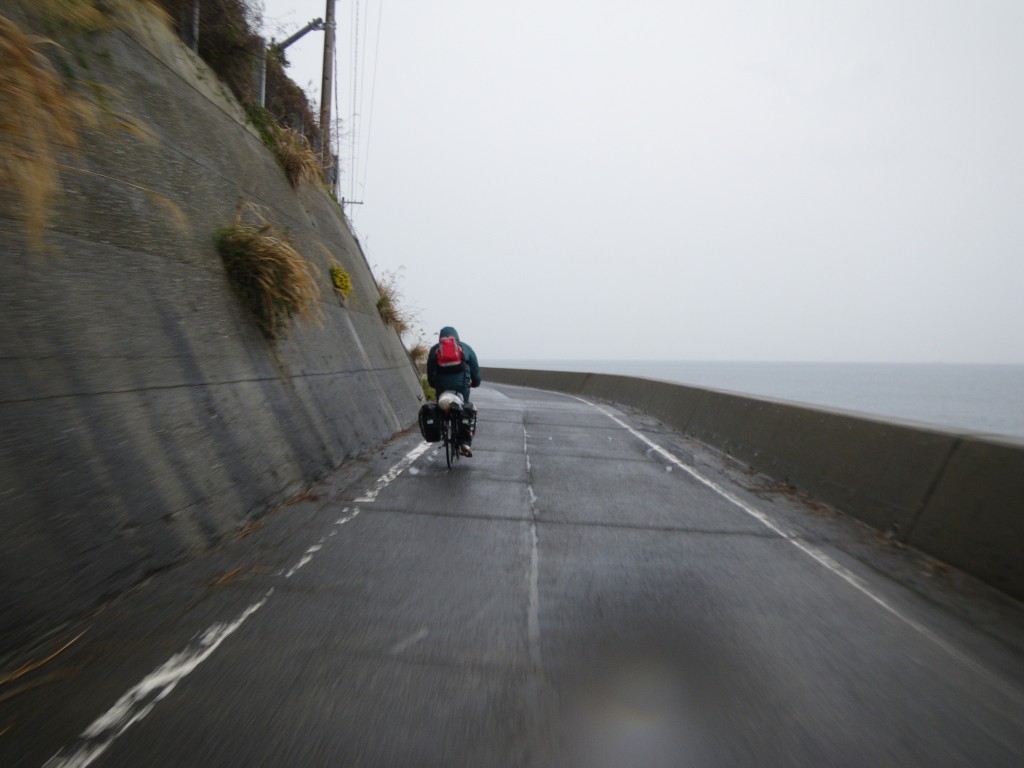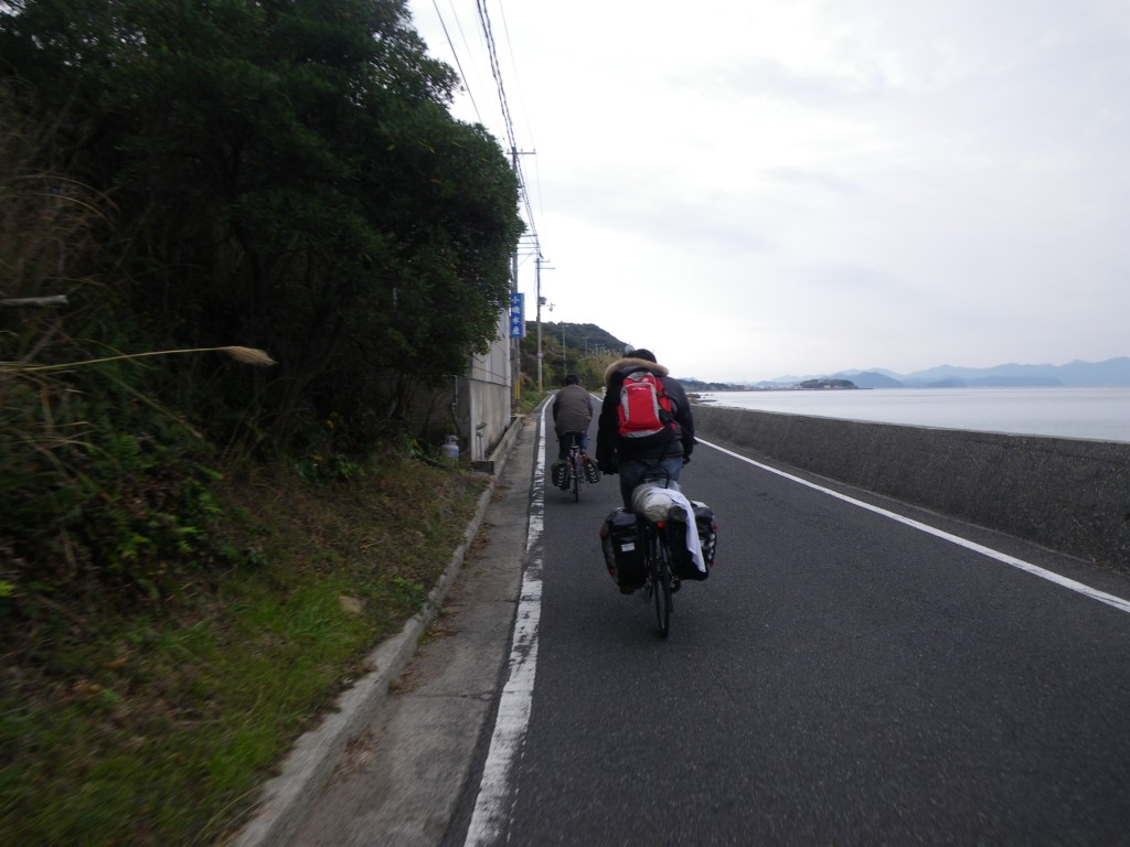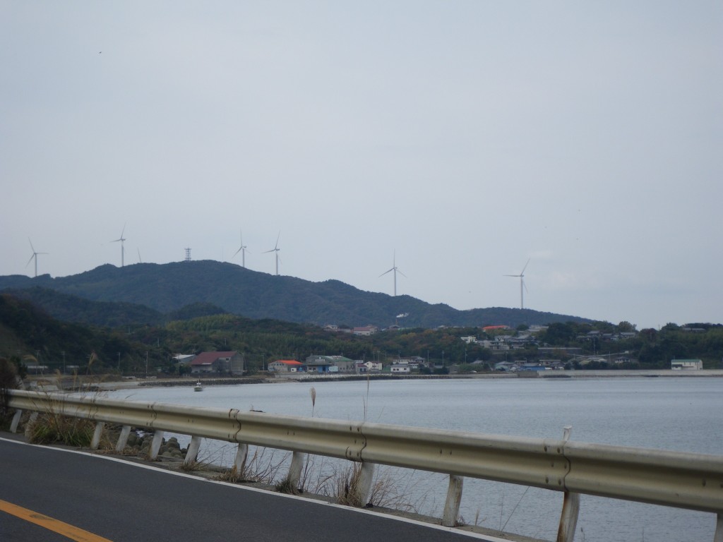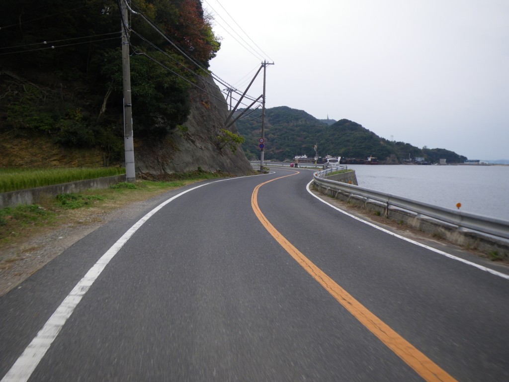 そんなにアップダウンもなく、わりとストレートな海沿いの道。海は荒れて、一部道路まで波が打ちあがっていたけれどそれも一部だけでいい時間に南あわじ市へ突入。