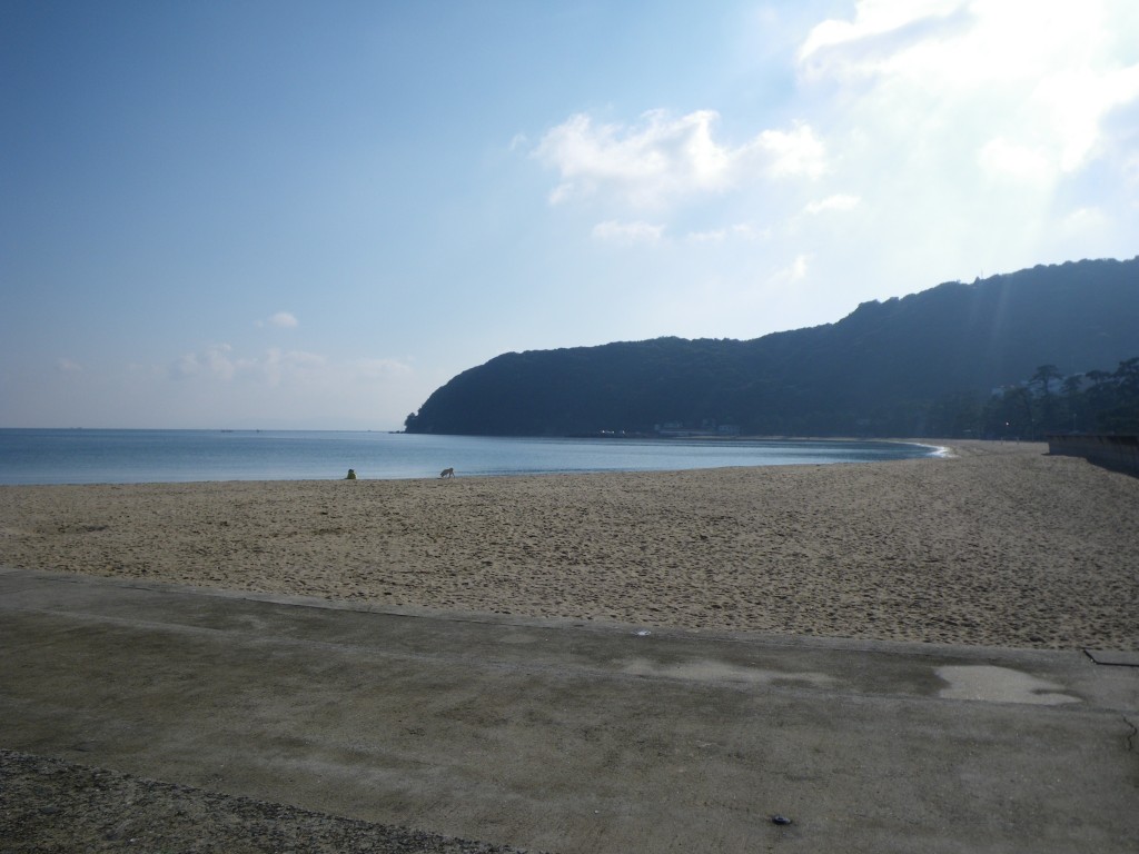 すぐ近くの海水浴場、大浜公園。天気がよくてほんとによかった。前日の雨がうそのよう。雨のあとだから空気が澄んでいて遠くまでよく見える。