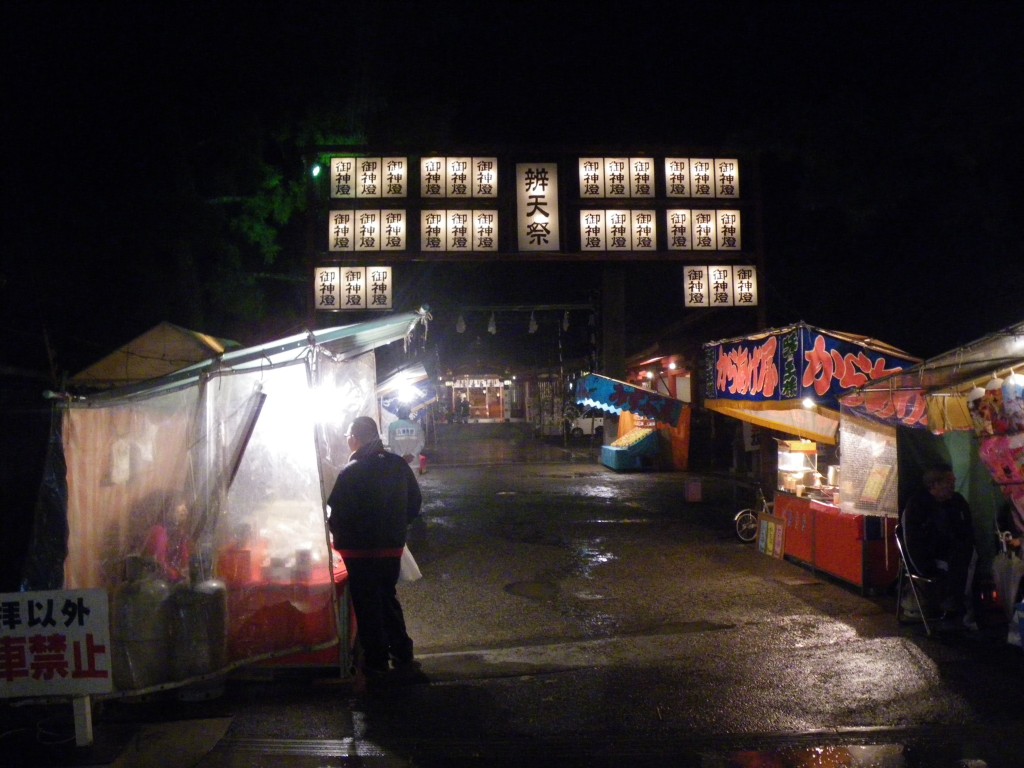 チェックインして濡れたものを部屋中に広げ、落ち着いたところでフロントで聞いたオススメのお店目指して街に出た。街といってもひっそりとした感じだが、神社はちょうどお祭りをやっていた様子。警官も数人出ていた。