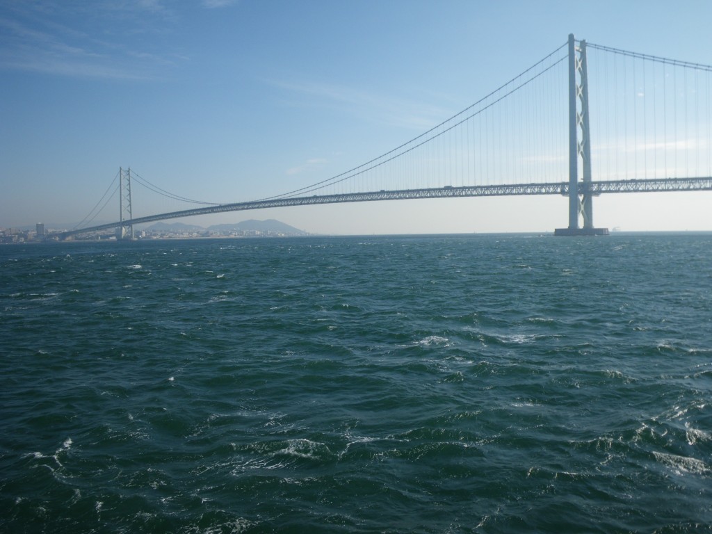 明石海峡はたくさんの大型船が往来するところ。そこを横断するたこフェリーも衝突回避でターンしたりしてなかなか楽しい。