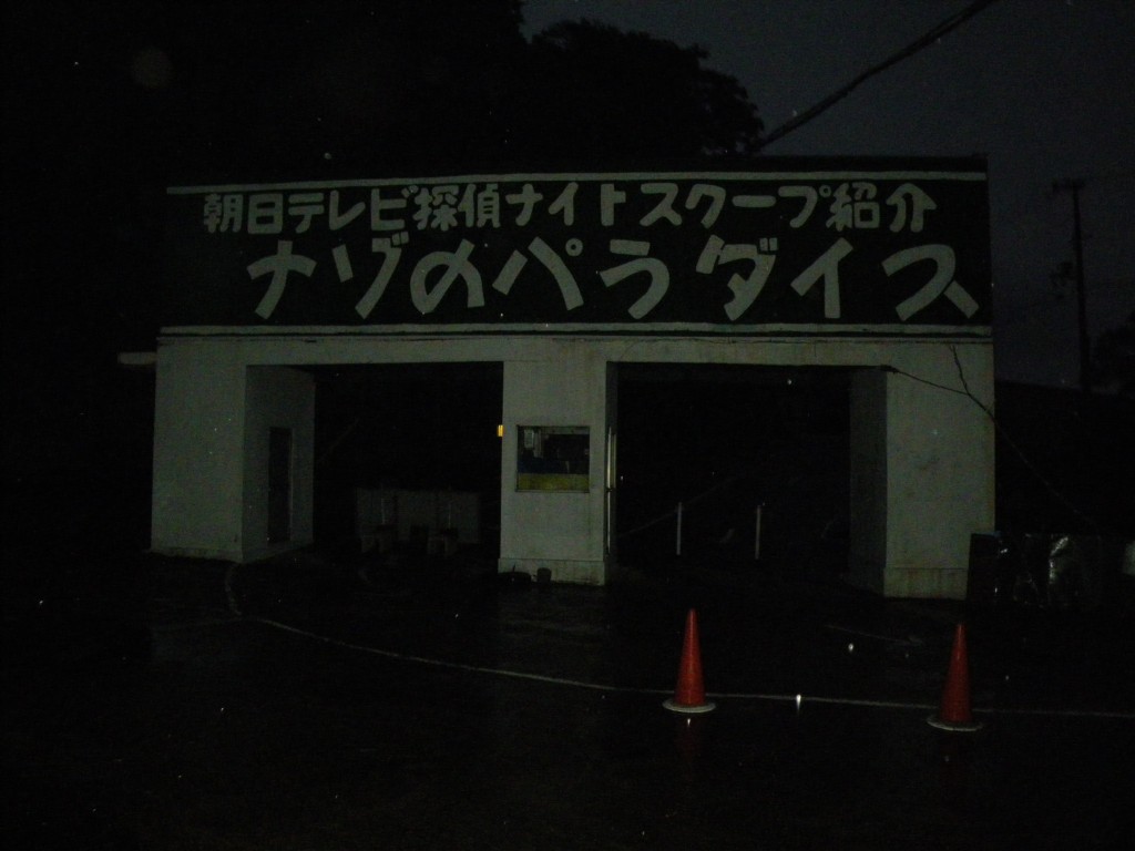 突如現れた激しい登り道をふぅふぅ言いながら登ると、残念ながら寄ることができなかったナゾのパラダイス。激坂を上った頃にはもうすっかり暗くなって、ライト点灯。