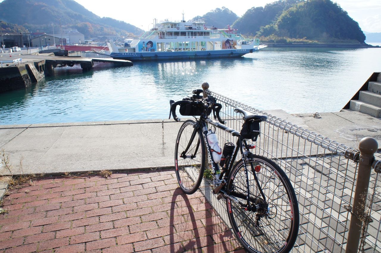 大三島・宮浦港に到着。慌てて自転車下ろしたけどしばらく停泊するようだ。