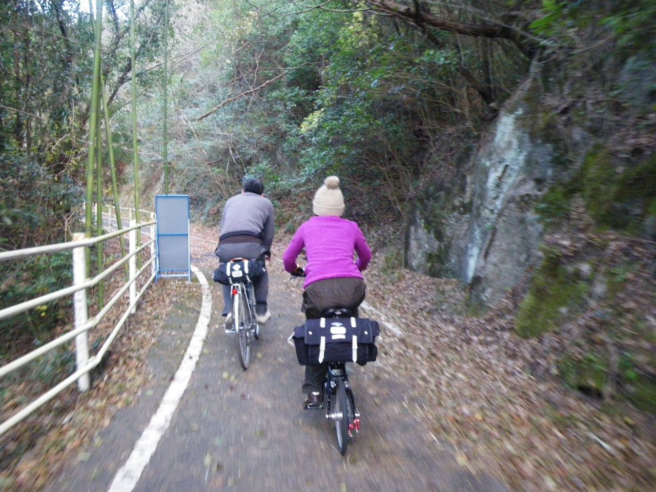 裏の鶴姫ロードでジオキャッシング。たきびこさんが発見!