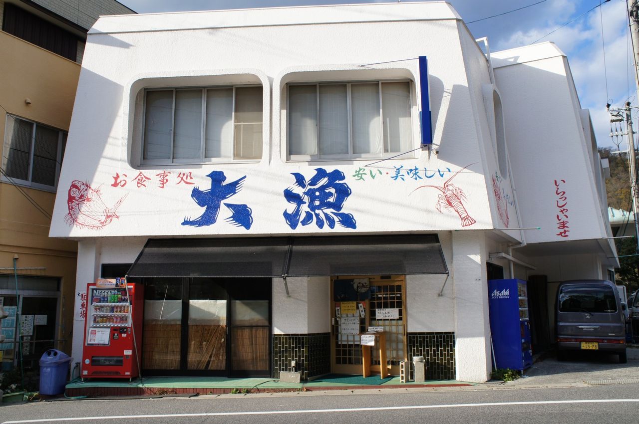 まずは遅い昼食で大漁食堂へ。サイクリングシーズンは行列ができるのでほぼ寄り付かないんだけど、時期外れ・時間外れで空いてるいい時間。