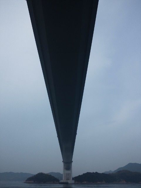 さっき渡った来島海峡大橋を下から見上げるの図。