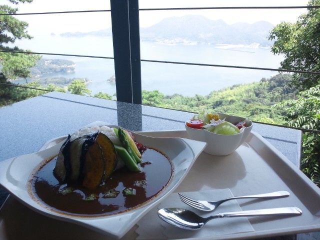 カレイ山でカレーを食べるの図。遠見茶屋のカレーは本格カレー。