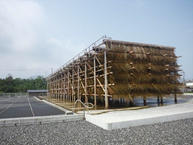 伯方の塩工場のうらにある昔ながらの塩精製を実験しているところ。眺めていると中の人が説明してくれて、工場見学を誘ってくれたけれどこの日は先が長いのでまた今度に。