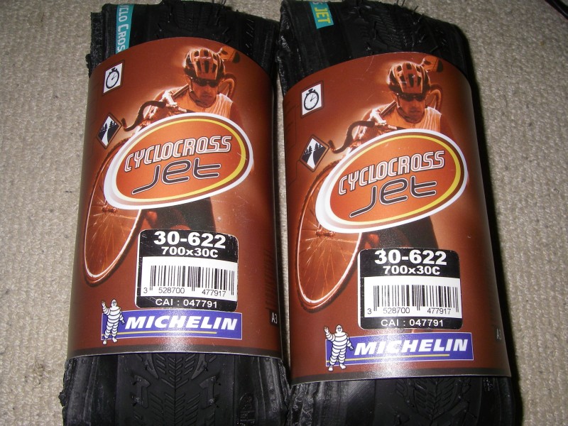 せっかくシクロクロスなんだからオフロードもちっとは走ろうと思って、これまた1ポンド200円くらいの去年の夏に買って放置していたシクロクロスタイヤ。MICHELIN CYCROCROSS JET。700×30C。