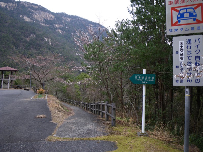 先日弥栄峡方面へ車で行ってみたら、途中から弥栄峡遊歩道ということで車両通行禁止だった。押して歩く分には大丈夫だろうけど、2.7kmあるので時間等ご注意を。