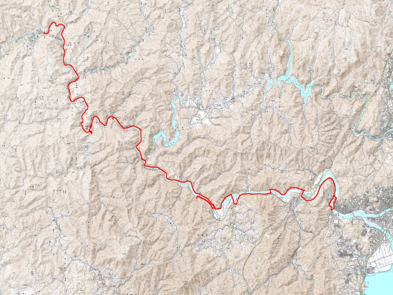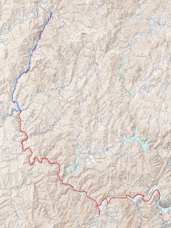 この地図でいうと、青い線が深谷温泉まで、赤い線がゴールまで。